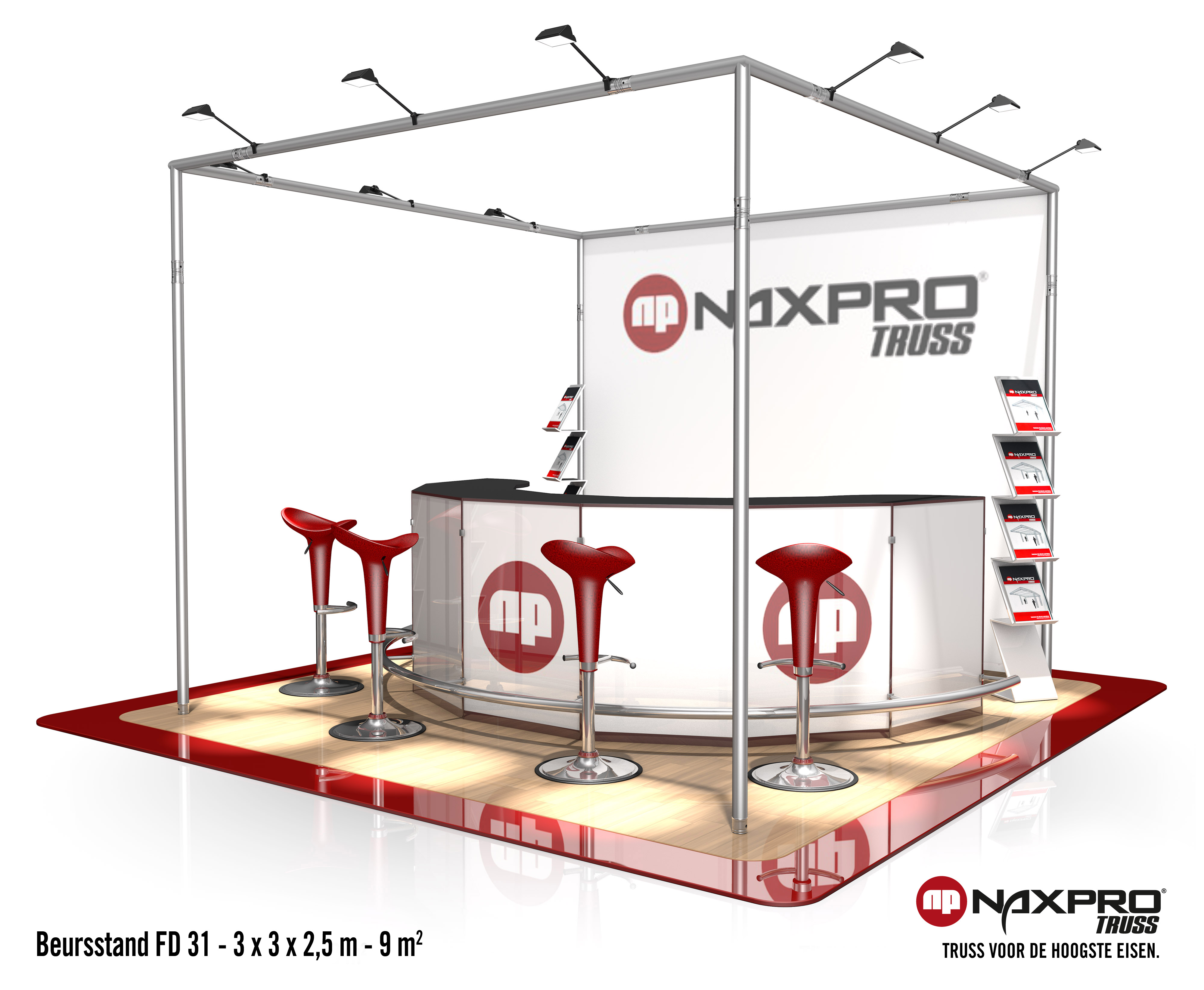 Ten opzichte van andere materialen hebben aluminium truss-systemen het voordeel dat zij zeer licht zijn in vergelijking met hun hoge draagvermogen. Logistiek gezien hebben zij het voordeel dat ze gemakkelijk en voordelig kunnen worden getransporteerd. De gemakkelijk te hanteren componenten en de moderne conische verbindingen zorgen voor een vlotte montage en demontage van Naxpro Truss beursstands en een niet te overtreffen kosteneffectiviteit.