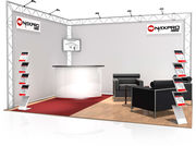 Modern beursstands die met Naxpro truss-systemen zijn opgebouwd, zijn altijd weer blikvangers. De modules bieden haast onbeperkte mogelijkheden voor een vormgeving op maat omdat ze op tal van manieren combineerbaar zijn. Op geschakelde stands, hoekstands, stands aan de kop van looppaden, blokstands of eilandstands komen de producten van de exposanten uitstekend tot hun recht tegen de achtergrond van de Naxpro Truss beursstands met hun aantrekkelijke design.